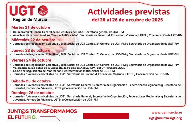 Previsiones Informativas de la Comisión Ejecutiva Regional de UGT-RM. Semana del 20 al 26 de octubre de 2025