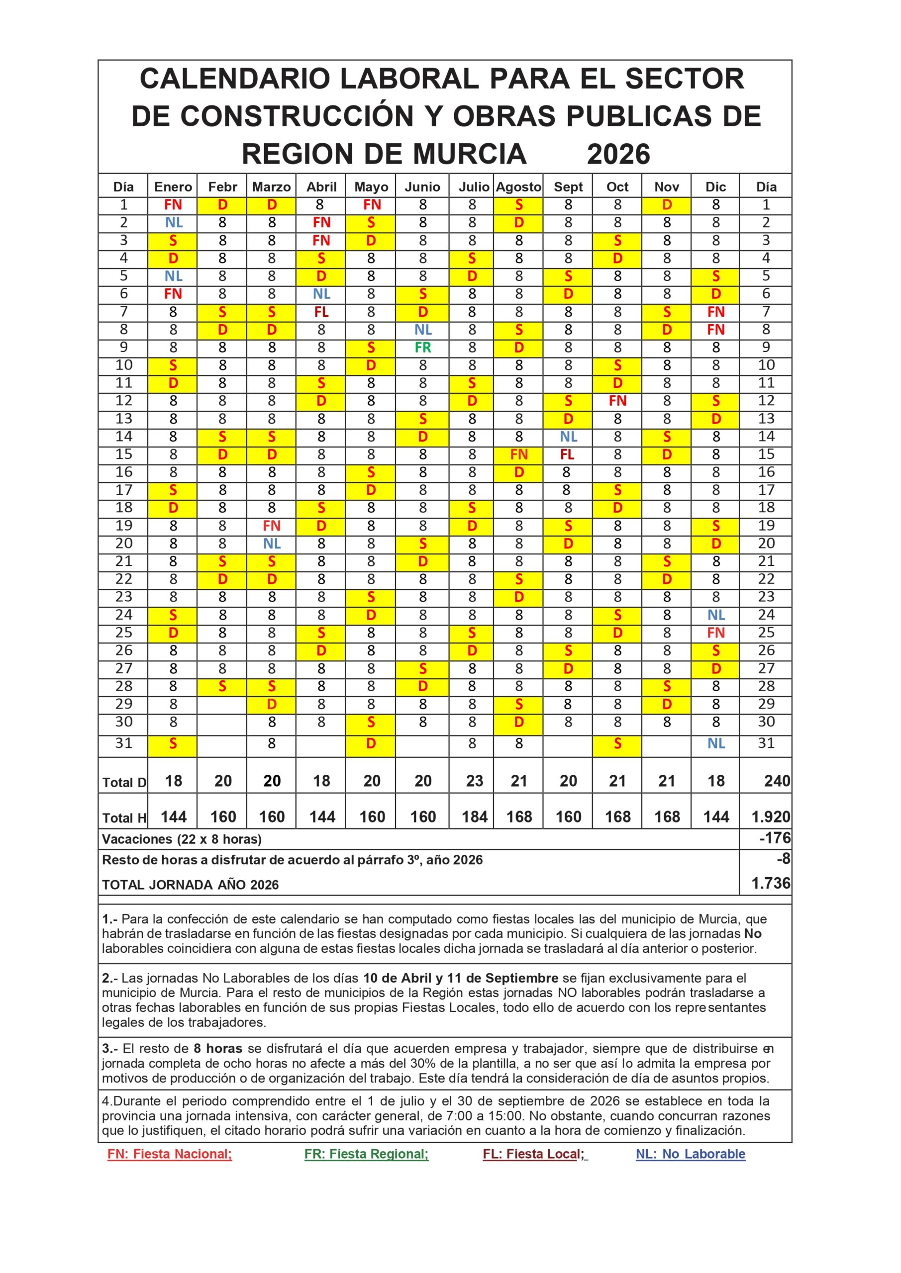 NOTA: Se adjunta la propuesta de Calendario Laboral de la Construcción que propone UGT-FICA, y que no ha tenido respuesta por parte de la patronal.
